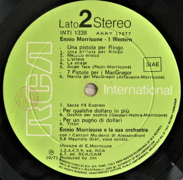 - Orchestra – Hugo Montenegro E La Sua Orchestra* (tracks: A1), Ennio Morricone E La Sua Orchestra* (tracks: A2 to A8, B1 to B9)