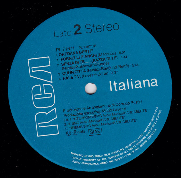 Track B4. Insieme/BMG Ariola Musica/Bandabertè