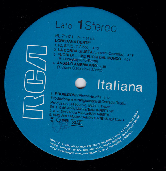 Tracks A2, A3, A4. BMG Ariola Musica/Bandabertè