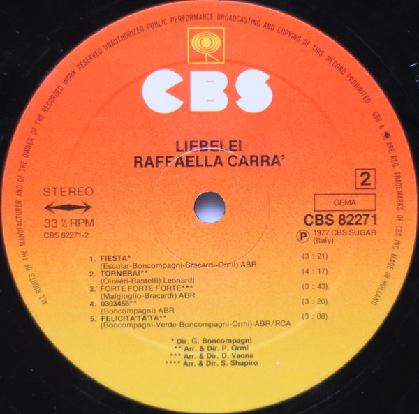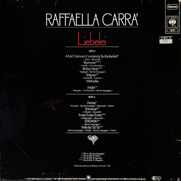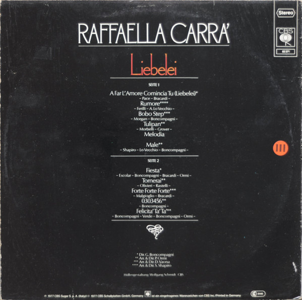℗ 1977 CBS Sugar S. p. A. (Italy)/ © 1977 CBS Schallplatten GmbH, Germany [...] CBS Inc./Printed in Germany
