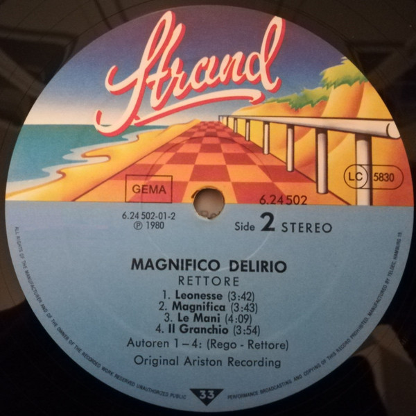 The LP was packed in a shrink foil together with a separate grid made of red or yellow plastic and the word 'Rettore' at the same position as on the front sleeve.