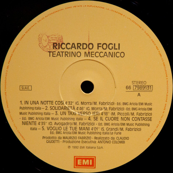 - Phonographic Copyright ℗ – EMI Italiana S.p.A.