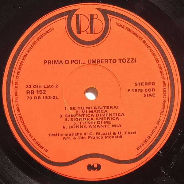 Fabbricato e stampato in Milano 1978 dalla CGD - Comp. Gen. del Disco S.p.A. Via Quintiliano, 40