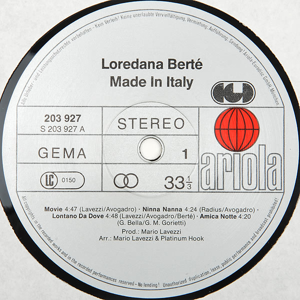 This is a label variation of Loredana Bertè - Made In Italy: the rim text with the copyright notifications is different.