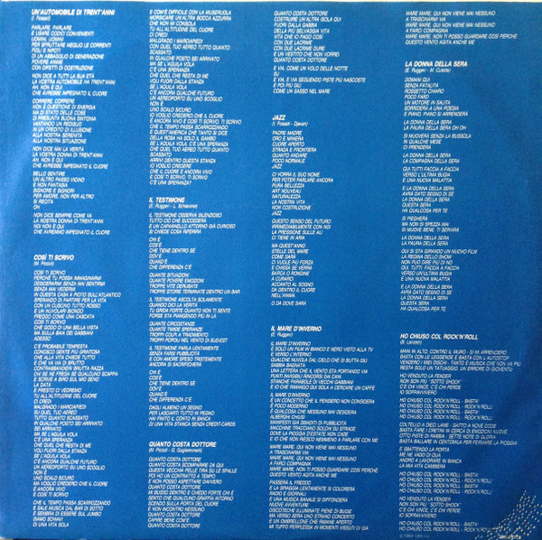 - Producer [Prodotto Da], Realization [Realizzato Da], Electric Guitar, Piano, Keyboards, Rhythm Section, Xylophone, Synthesizer [Oberheim], Soprano Flute [Soprano Seet Flute] – Ivano Fossati