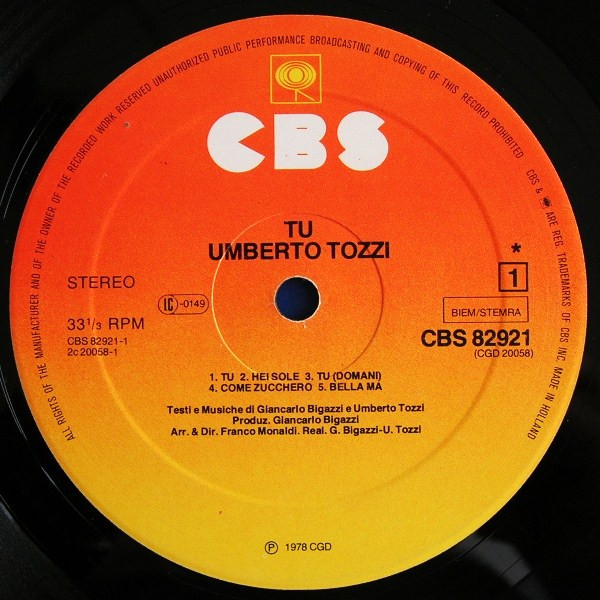 - Written-By – Giancarlo Bigazzi (tracks: A1 to B3), Umberto Tozzi (tracks: A1 to B3)