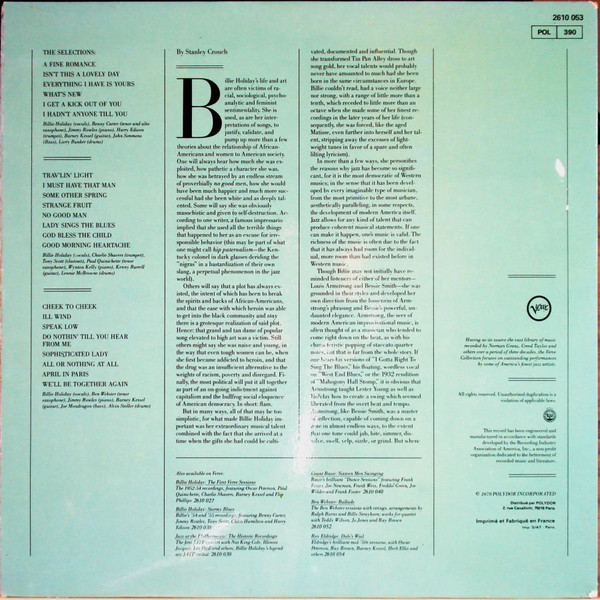 - Vocals – Billie Holiday