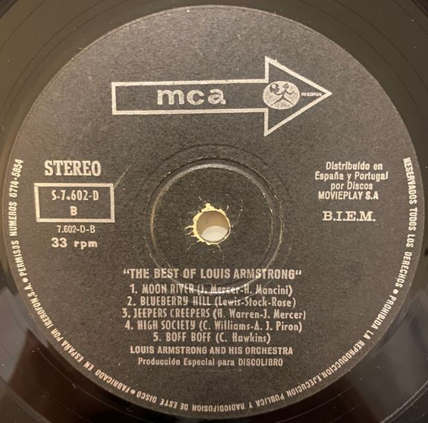 Credited to Louis Armstrong on cover / back cover and Louis Armstrong And His Orchestra on labels.