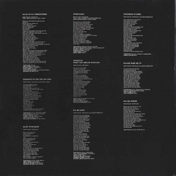 - Written By – Tom Waits / Greg Cohen (tracks: A2, B3), Tom Waits / Kathleen Brennan (tracks: A6 to A8)