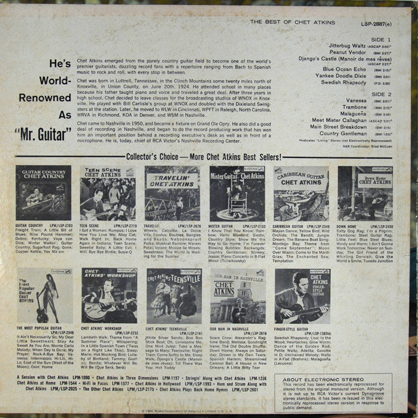 Tracks A1 to A4, B1, B2, B4 and B6 are marked as true stereo recordings, remaining are "electronically reprocessed for stereo".