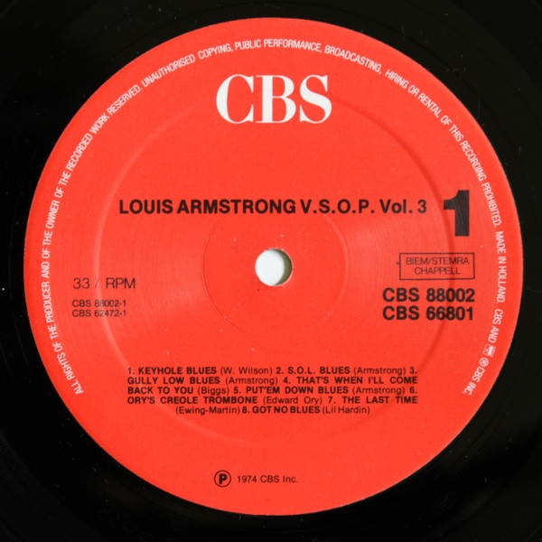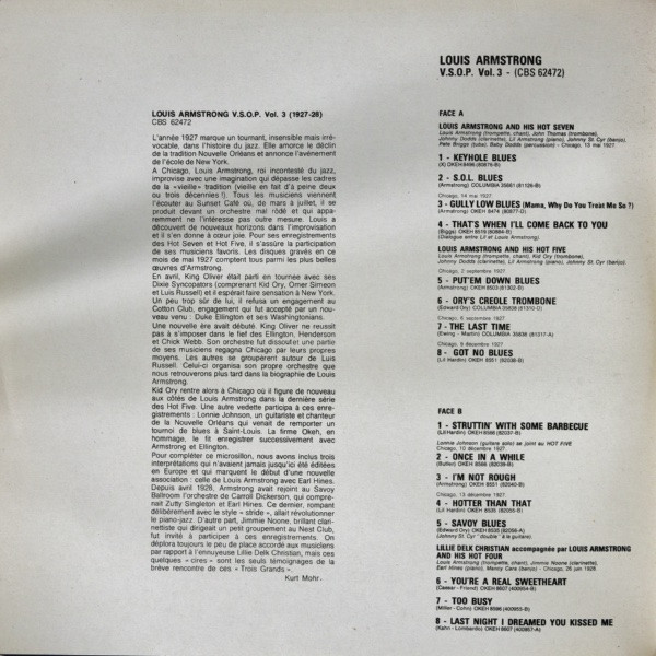 Side A & B from the release CBS 62472 - Louis Armstrong V.S.O.P. Vol. 3 (1927-28)