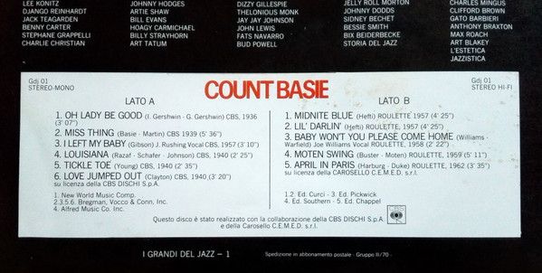 Attached to n. 1 of "I Grandi del Jazz" ("The Greats of Jazz").