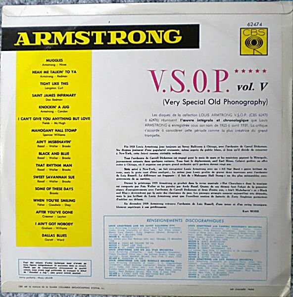 Les disques de la collection V.S.O.P. réunissent intégralement et chronologiquement les enregistrements réalisés sous le nom de Louis Armstrong de 1925 à 1932.