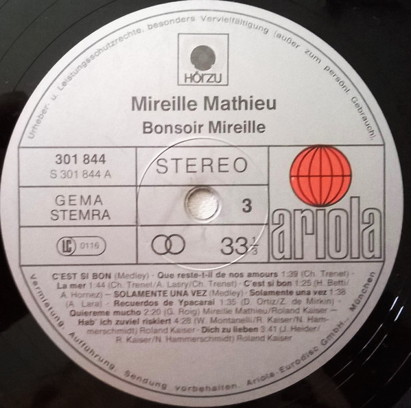 | A3 | –Mireille Mathieu | Nous, Comme Des Fous / Walzer D'Amour | 3:10 |