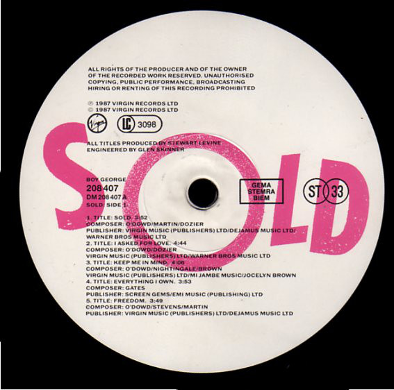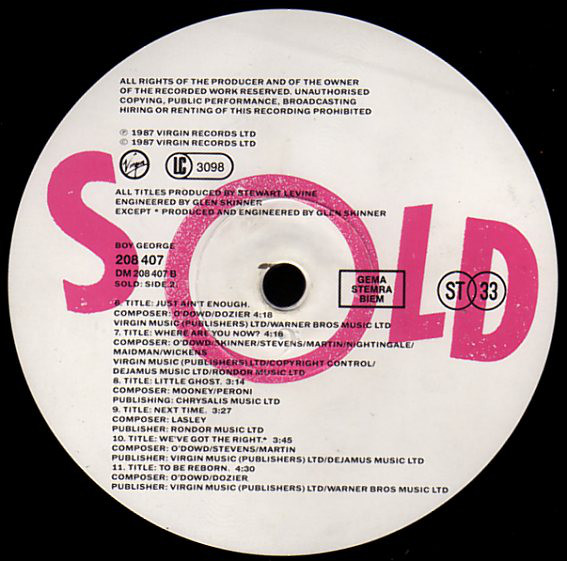 © 1987 Virgin Records Ltd.