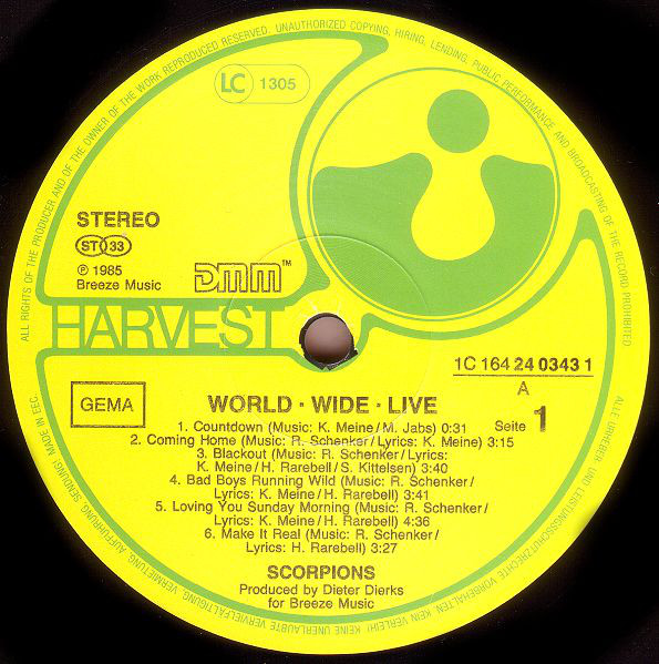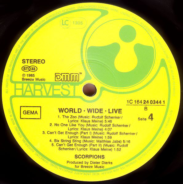 Tracks A2, A4, B1, B4 and C1 from the album Scorpions - Love At First Sting
