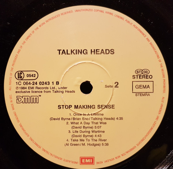 ℗ 1984 Original sound recordings made by EMI Records Ltd., under exclusive license from Talking Heads.