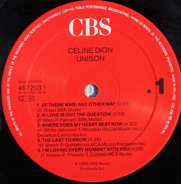 - Phonographic Copyright ℗ – CBS Music Products Inc.