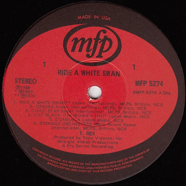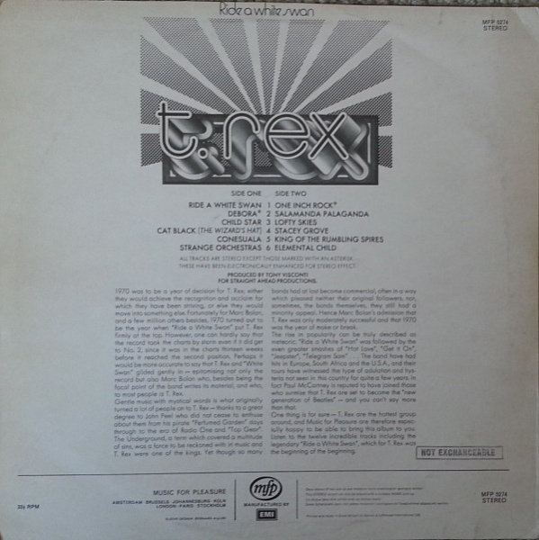The version with the same graphics but a U.S. style tip-on sleeve is here T. Rex - Ride A White Swan.