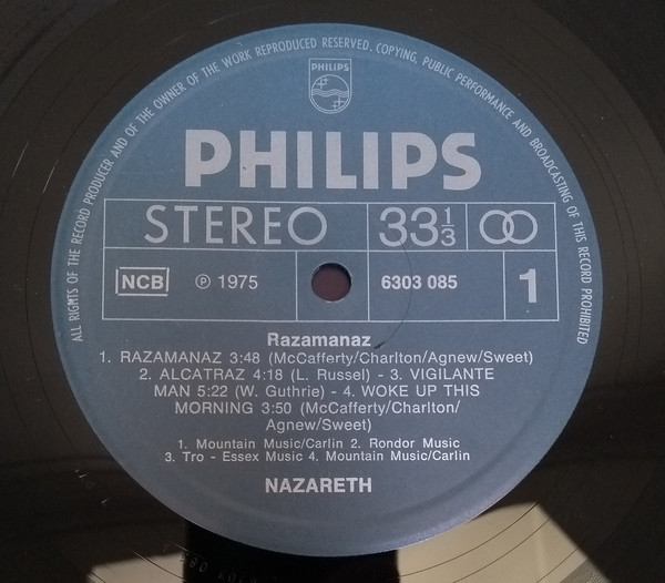 This release has a shorter rim text compared to Nazareth (2) - Razamanaz and a different and bolder font was used for the side indicators on the labels compared to Nazareth (2) - Razamanaz, which is otherwise identical to this one.