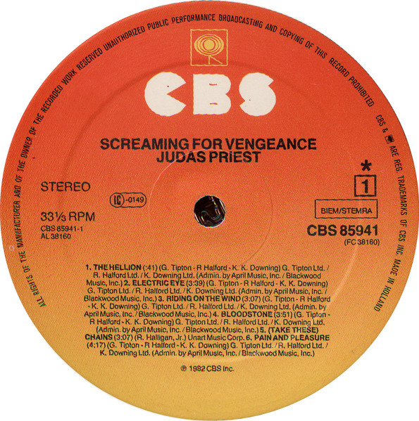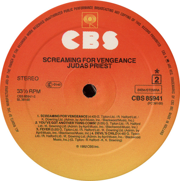 Similar release with BCS-Logo, catalog number, distribution code and price code printed in blue is here: Judas Priest - Screaming For Vengeance