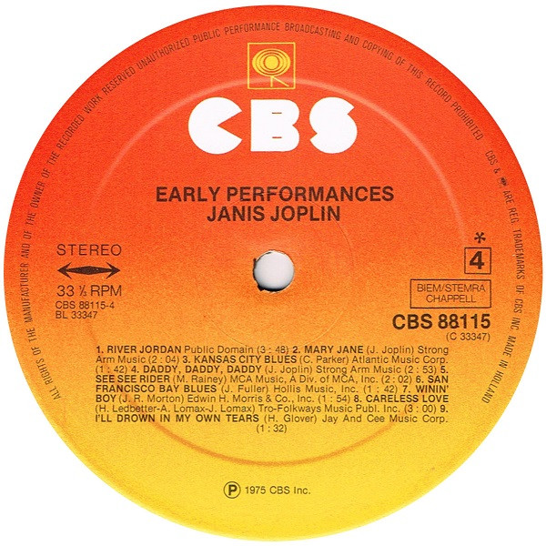 | D1 | Janis Joplin With The Dick Oxtot Jazz Band*– | River Jordan | 3:50 |