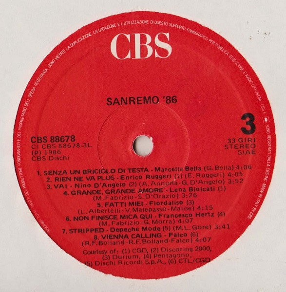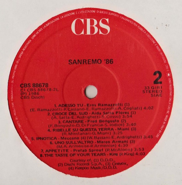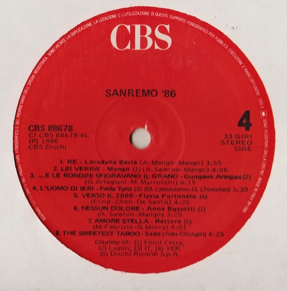 | D1 | Loredana Bertè– | Re | 3:55 |