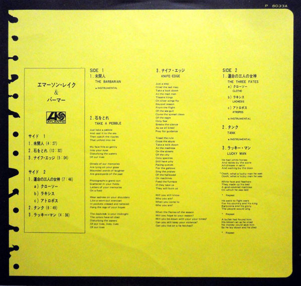 - Arranged By, Directed By – Emerson, Lake & Palmer