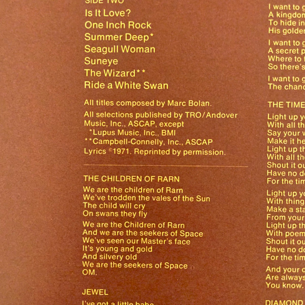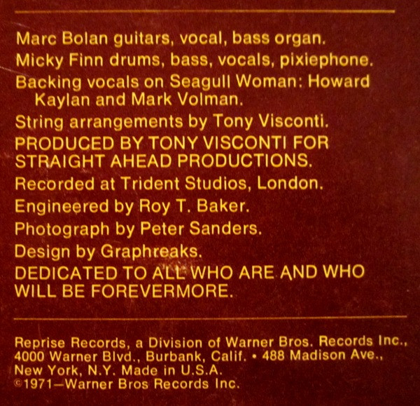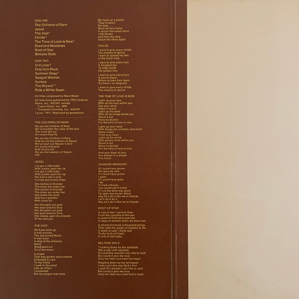 - Guitar, Vocals, Organ [Bass], Composed By – Mark Bolan*