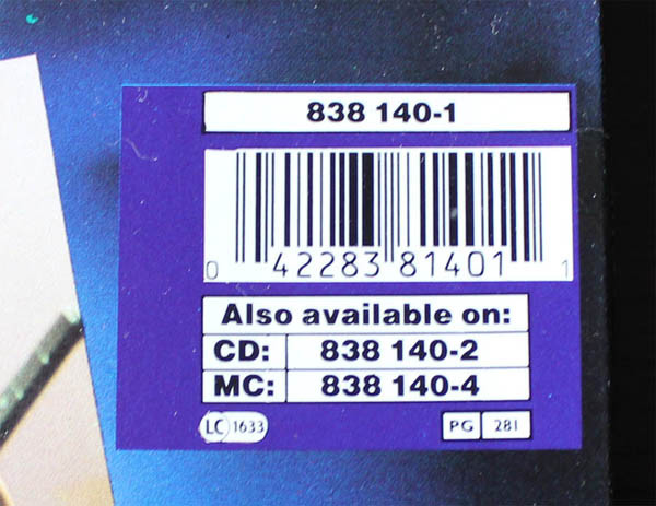 1989 Europe Phonogram/Vertigo, with spaceship labels and inner sleeve, side B mispressed playing classical opera (838 140-1 / 841 242-1)