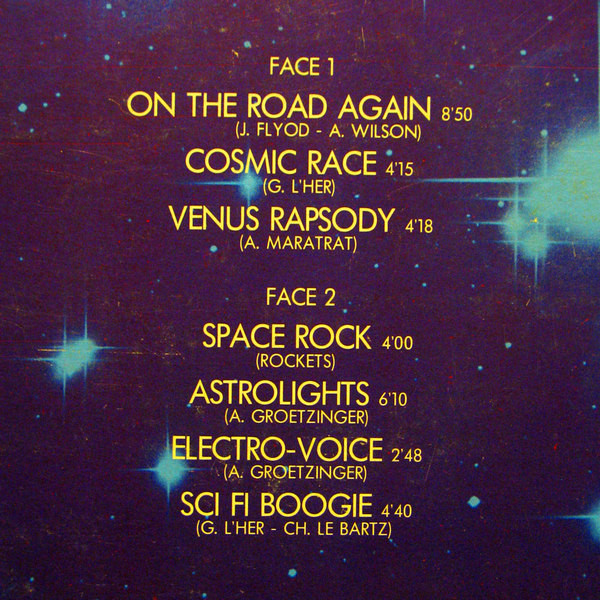 - Written-By – A. Wilson* (tracks: A1), A. Groetzinger* (tracks: B2, B3), A. Maratrat* (tracks: A3), C. Le Bartz* (tracks: B4), F. Jones* (tracks: A1), G. L'Her* (tracks: A2, B4), Rockets (tracks: B1)