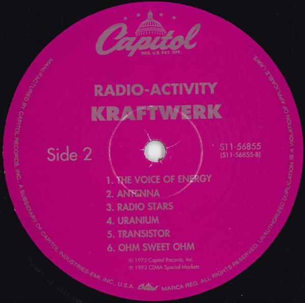 This is a 1993 vinyl re-issue of Kraftwerk's 1975 LP. Even though listed on the labels, tracks A5 Intermission and B5 Transistor are mysteriously missing from this pressing.