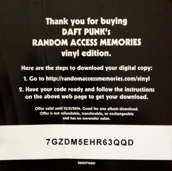 Not to be confused with the 2013 repress Random Access Memories which contains the following on side D: