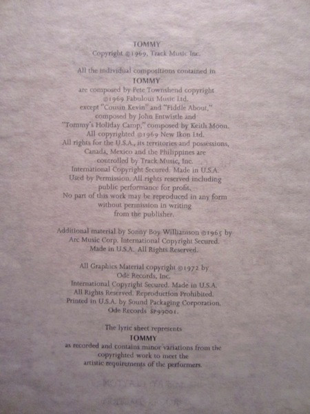 - Written-By – John Entwistle (tracks: B1, B5), Keith Moon (tracks: D3), Pete Townshend (tracks: A1 to A5, A7, B2 to B4, B6 to D2, D4, D5), Sonny Boy Williamson (2) (tracks: A6)