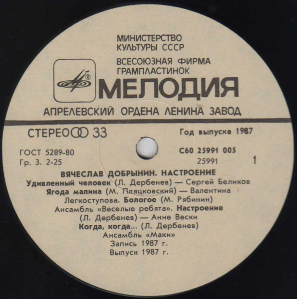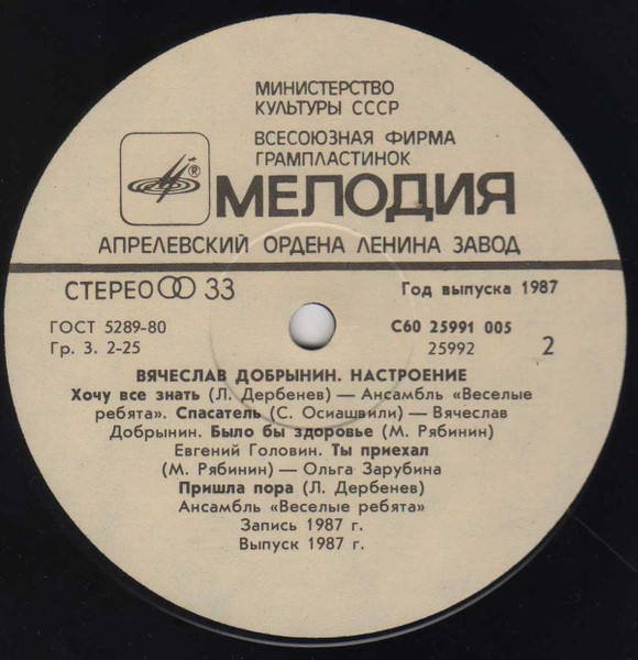 - Record Company – Всесоюзная Студия Грамзаписи