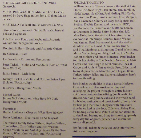 - Acoustic Guitar – Dominic Miller, Rob Mathes, Sting