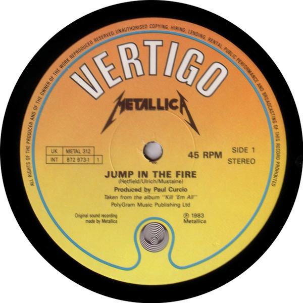 - Jump In The Fire (METAL 312 / 872 973-1) Originally released: January 1984