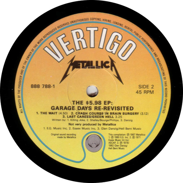 - The $5.98 E.P. - Garage Days Re-Revisited (888 788-1) Originally released: August 1987
