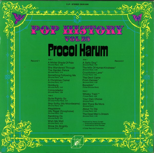 - Written-By – Gary Brooker (tracks: A1, A2, A3, A4, A5, A6, B1, B2, B3, B4, B5, B6, C1, C2, C4, C5, D2, D3, D5), Keith Reid (tracks: A1, A2, A3, A4, A5, A6, B1, B2, B3, B4, B5, B6, C1, C2, C3, C4, C5, D1, D2, D3, D4, D5), Matthew Fisher (tracks: B1, C5), Robin Trower (tracks: C3, D1, D4)