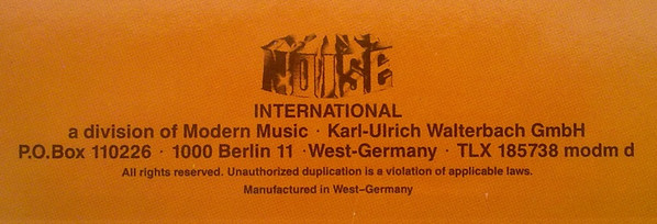 Recorded and mixed at Musiclab, Berlin in August / September 1988