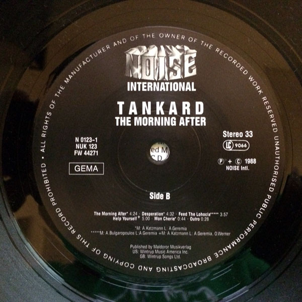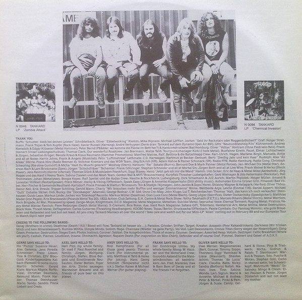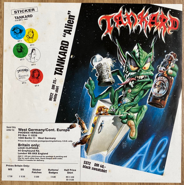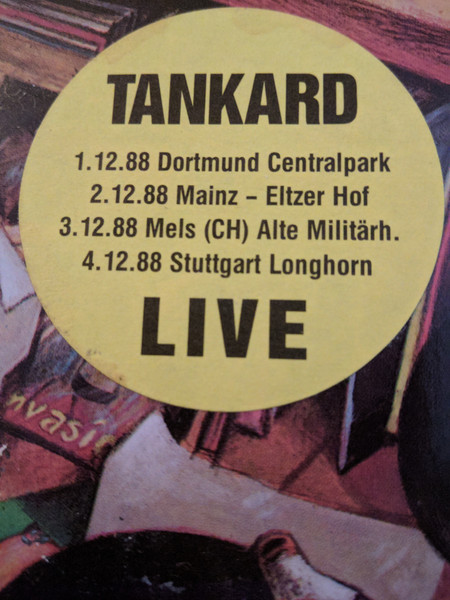 Some versions include a front sticker; "Tankard Live + Tourdates".