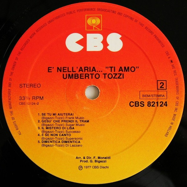 - Phonographic Copyright ℗ – CBS Dischi S.p.A.