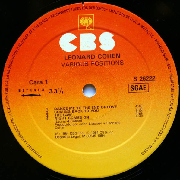 Close to Leonard Cohen - Various Positions but with a slighty different rim text: here is printed "Impuesto de Lujo a Metalico - Permiso num. 7053"