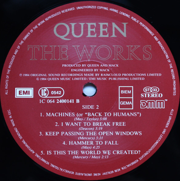 Back sleeve: Marketed, manufactured and distributed by EMI. Printed in Germany by 4P Nicolaus GmbH, Köln