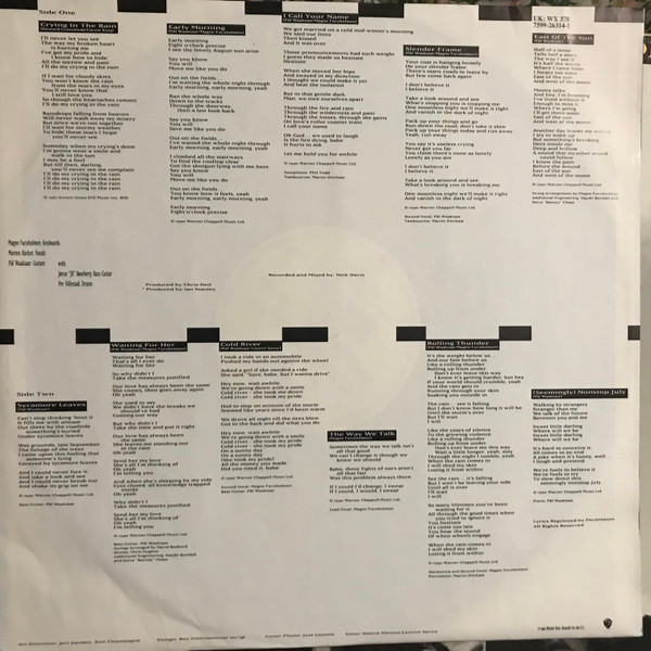 There's a typo on track B1, visible on the disc label, side two: "Sycamore Leaves" is incorrectly spelled "Sycamore Leavers"