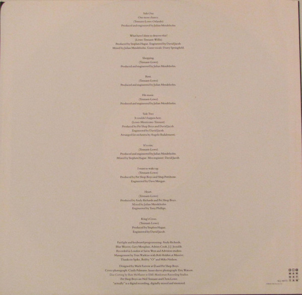 Sleeve shows Disc Cutting credit for Ron McMaster at EMI-Manhattan Recording Studios. Runouts indicate this credit is not applicable to this release, as it was mastered at CBS Canada's in-house facilities (engineer unknown).