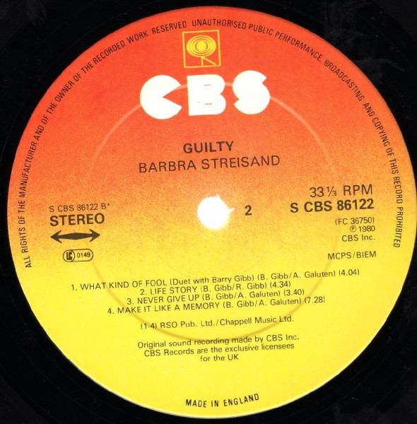 Barbra Streisand - Guilty: Λ and timtom in the runout
