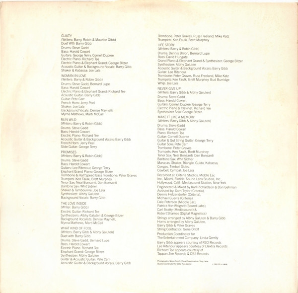 - Written-By – A. Galuten* (tracks: B1, B3, B4), B. Gibb* (tracks: A2 to B4), R. Gibb* (tracks: A2 to A4, B2)