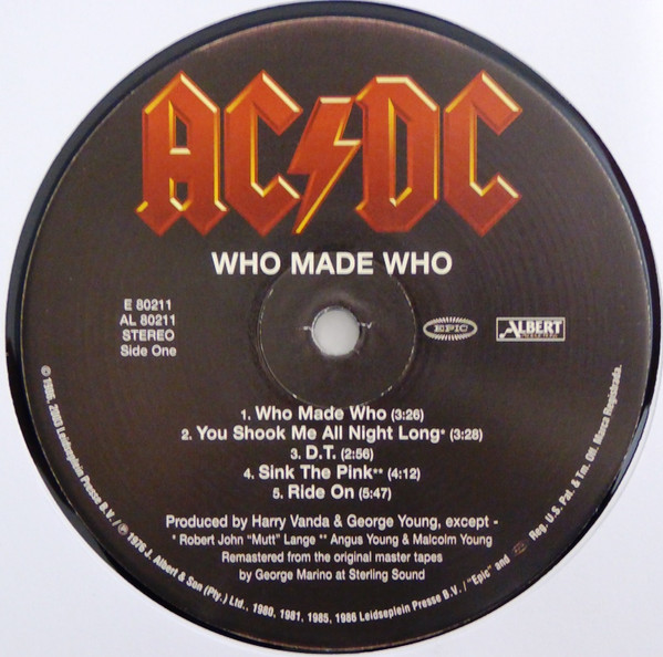 - Producer – Robert John "Mutt" Lange* (tracks: A2, B1, B4), Harry Vanda & George Young* (tracks: A1, A3, A5, B2, B3)