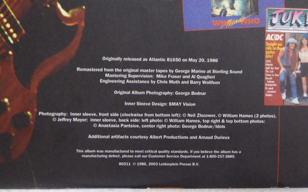 - Photography By [Inner Sleeve, Front Side] – Jeffrey Mayer, Neil Zlozower
